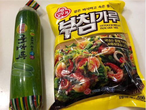 友達家族が遊びに来るというので 韓国料理を色々作ってみましたー 材料は鶴橋の商店街で購入。 エホバク はズッキーニみたいな食べ物です。 韓国語の先生がカボチャの子供って言ってた笑 ホバク=カボチャ チヂミの粉とキンパッ用の海苔は いつも購入する金…