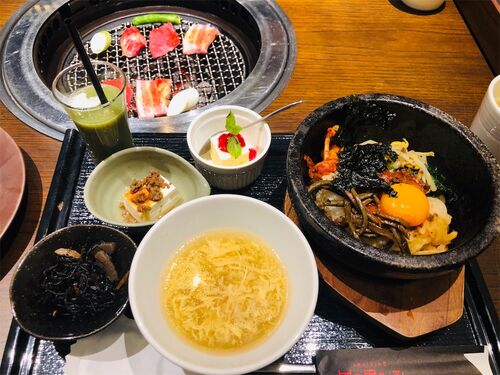 先日『肉が食べたい!!!』と話してた 同僚と思いきって昼休みに焼肉食べに 行って来ましたー笑笑 レディース御膳にはお肉以外にも ピビンバ、スープ、一品が2つ、デザート スムージーがついてます! お肉ー!\(^o^)/ 3種類と海老と野菜がついてます! 焼…